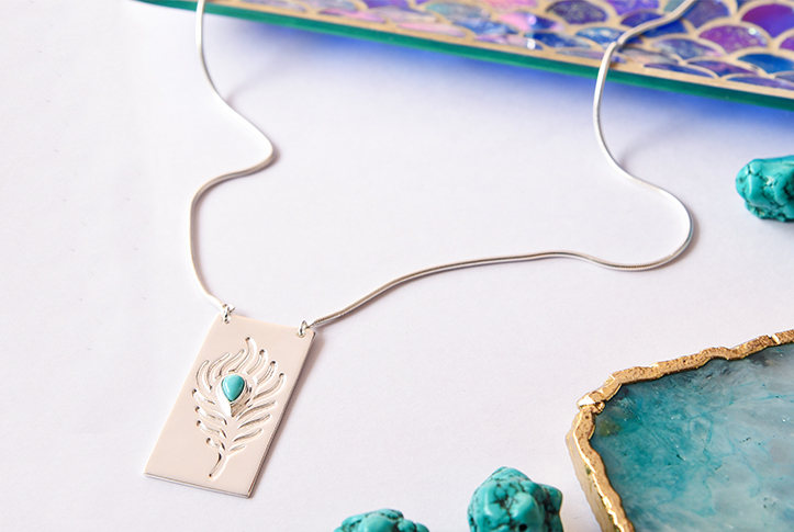 Silver necklace with turquoise, to increase intuition and wisdom leading to greater self-realization.